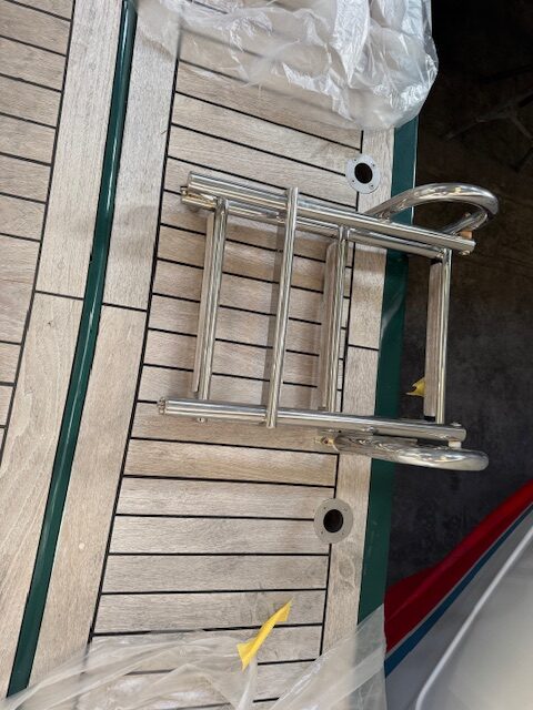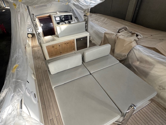 Balsa salvavidas, Bañera en teca, Cojines en bañera, Cubiertas laterales en teca, Ducha en bañera, Escalera de baño, Mesa en bañera