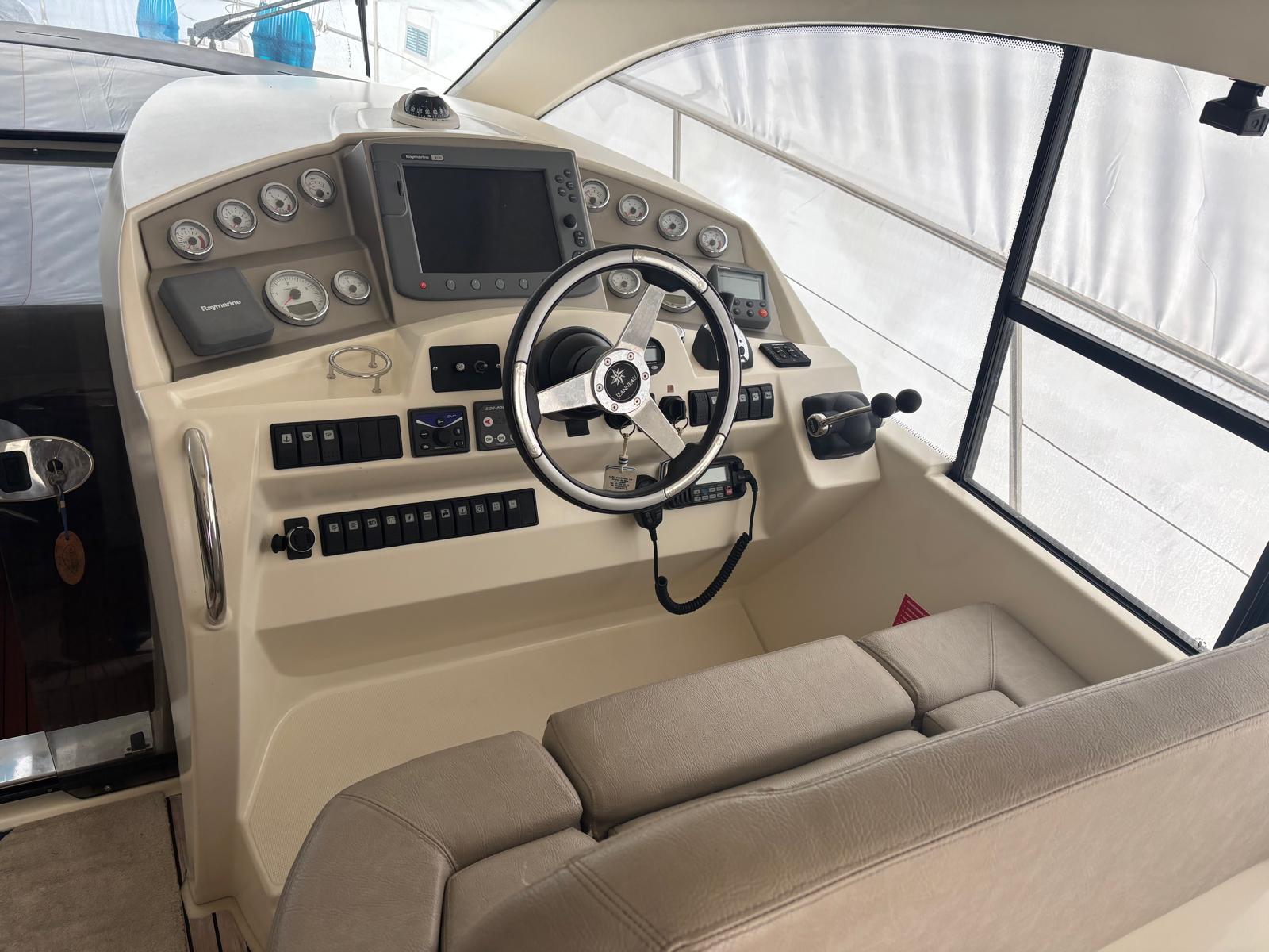 Impulsado por potentes motores Volvo Penta D6-370 con sistema IPS (Joystick) y con pocas horas de uso ( 295 ), ofrece una maniobrabilidad y un rendimiento deportivos con una velocidad de crucero cercana a los 24 nudos.